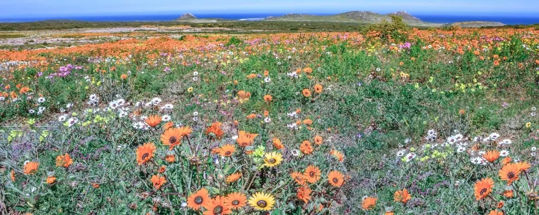 Kogelberg Biosphere Reserve is the first South African biosphere reserve and is situated in the Western Cape Province about 40 km from Cape Town. It covers 103,629 hectares, more than 80% of which consists of mountainous landscape ranging from high mountain peaks and deep valleys to gentle hills and lower mountain slopes. The remaining area comprises a gently rolling coastal plain and a marine area, which covers about 24,500 hectares. The coastline is mostly rocky with sandy beaches and estuaries.