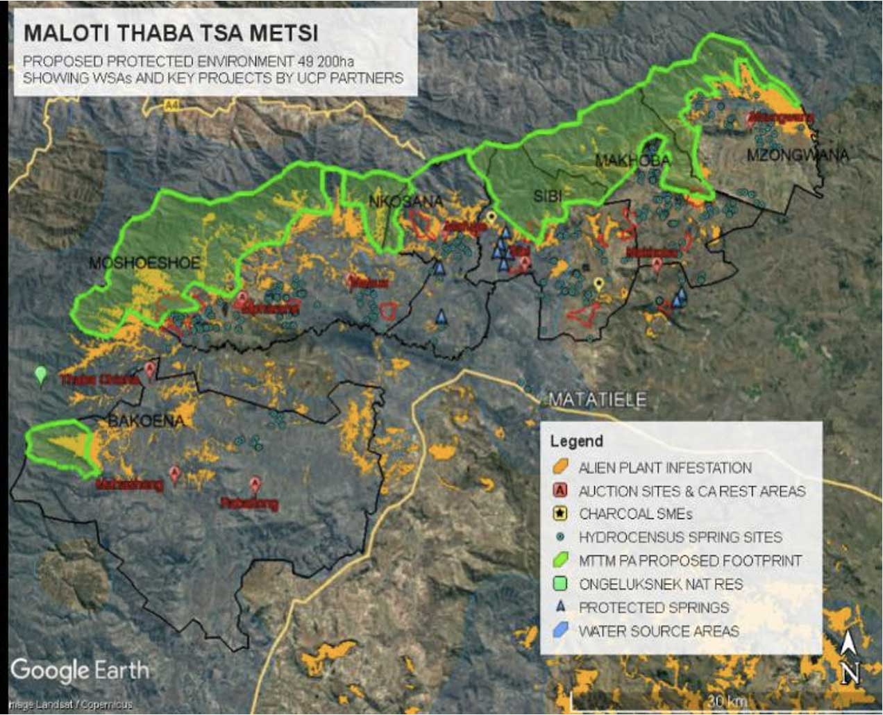 The protected area comprises six Traditional Authorities, which form the core of the Management Authority for the declared Protected Environment. The name ‘Maloti Thaba Tsa Metsi’ was decided on by the Traditional Authority leaders together with stakeholders from the UCP support partners.