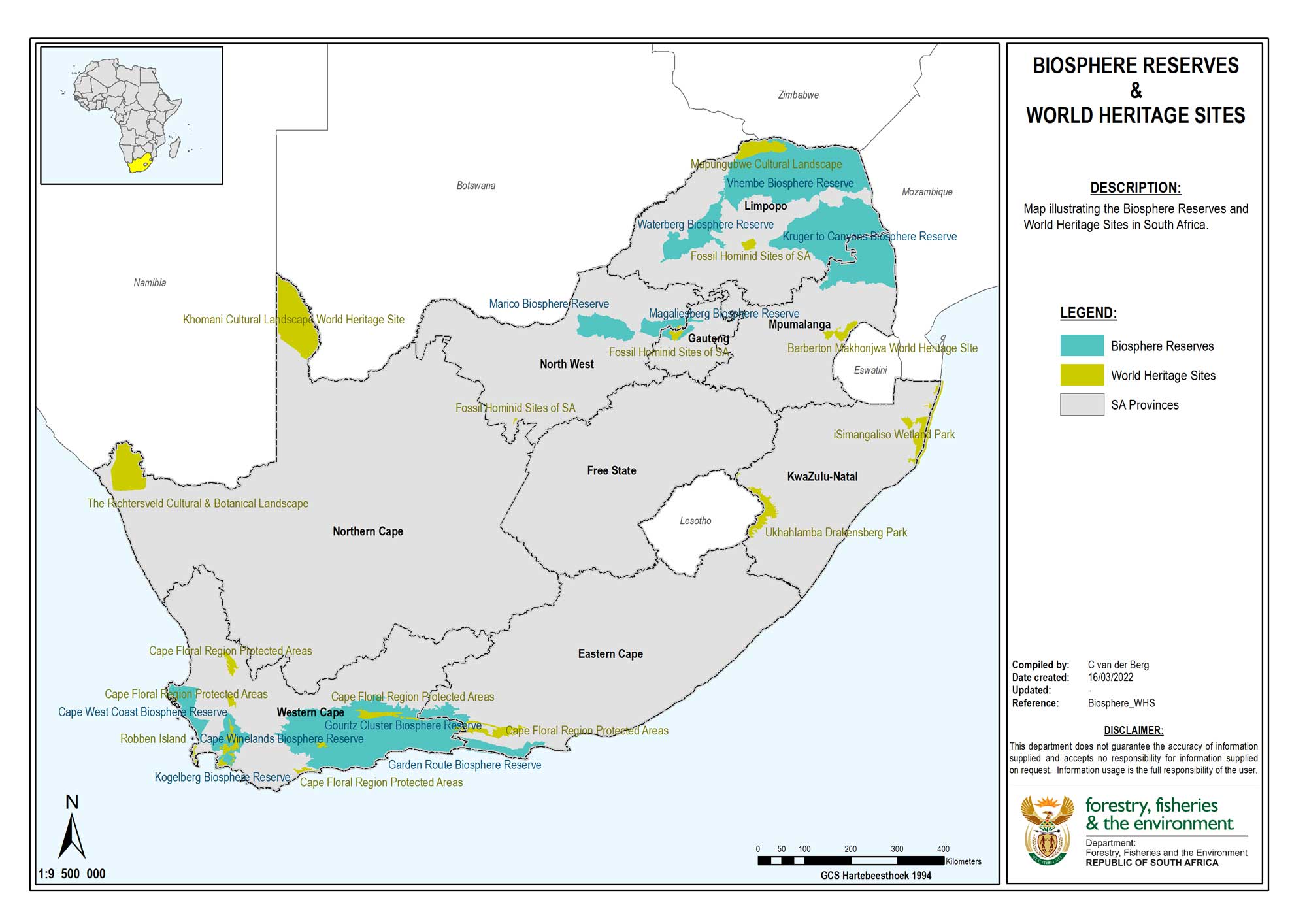 Vhembe Biosphere Reserve is located in the northeast of South Africa near the border with Botswana, Mozambique and Zimbabwe. The reserve includes the northern part of Kruger National Park, Mapungubwe National Park and World Heritage site, several Provincial Nature Reserves, two recognized centres of biodiversity and endemism (Soutpansberg and Blouberg), and the Makgabeng Plateau, which contains more than 1,000 rock art sites.